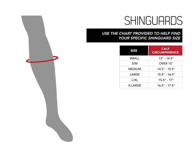 See size chart for Shin and Headgear.